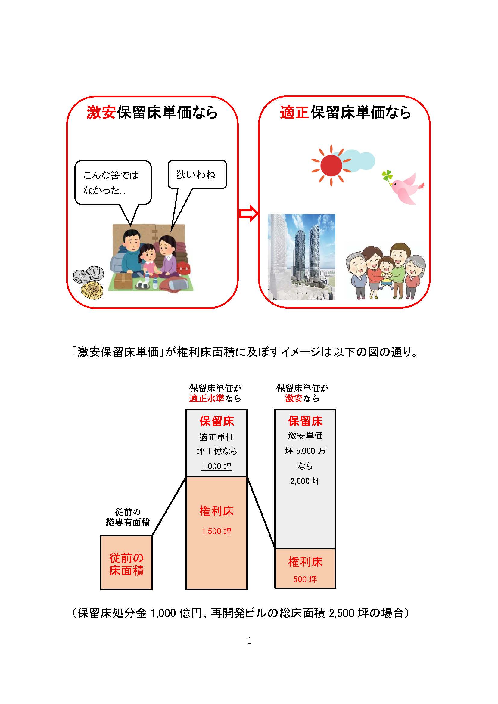 したがって、不動産鑑定士は、事業協力者(東急不動産)による推薦などで決めるのではなく、我々地権者自身で決めましょう。また、我々地権者は、保留床単価が適正であるかを、自らチェックしましょう。